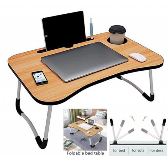 Wooden Laptop Table Folding Study Table Portable Bed Table High Quality Stand Shiny Cup Holder & Notebook & Tablet Stand (Random Colours)