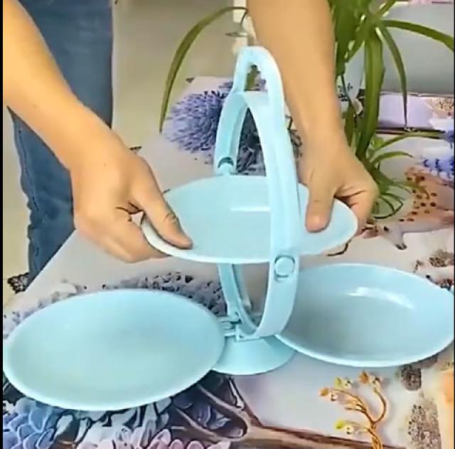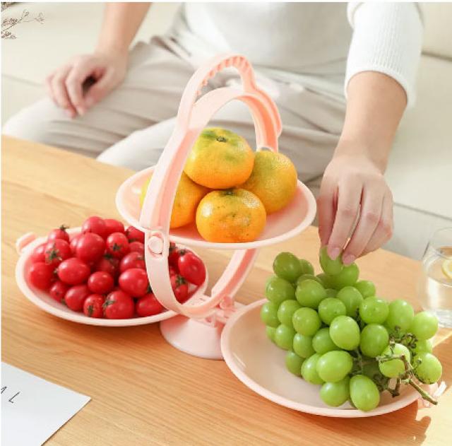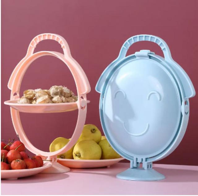 3 In 1 Modern Living Room Creative Shape Folding Snack Rack Plastic Double Layers Snack Storage Box Fruit Plate