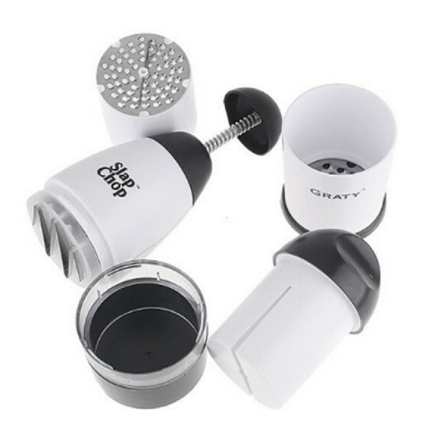 The Slap Chop is a manual chopper machine that works when you slap the plunger part.
