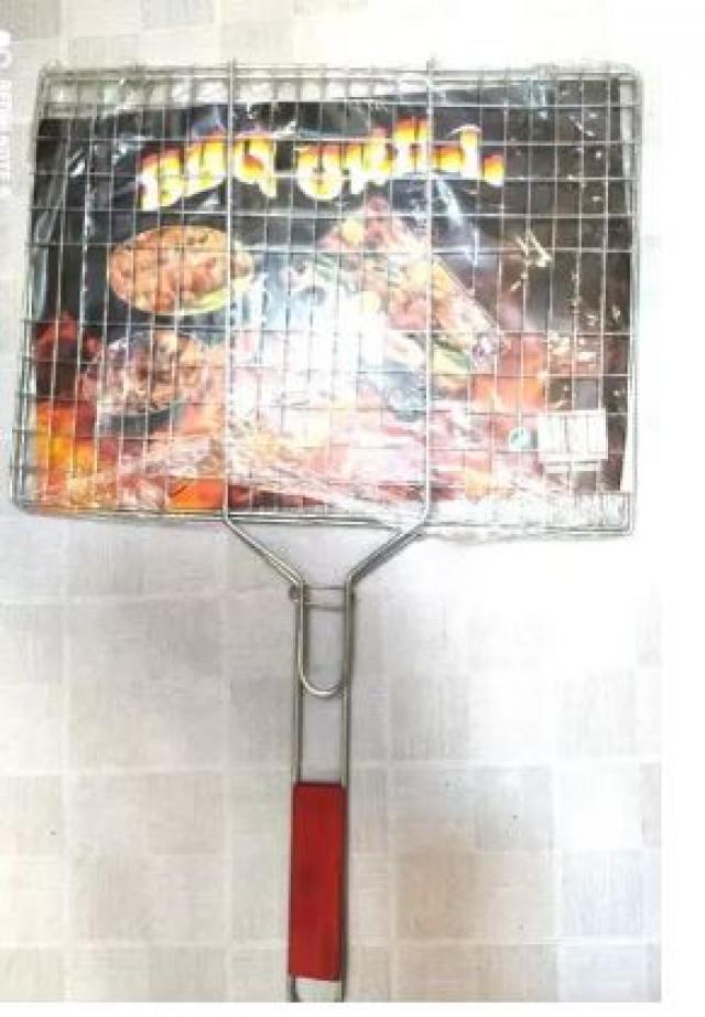 Product details of BBQ Square Grill Pan Wooden Handle Grill Bar B Q Stainless Steel Fish & Chicken Size Large