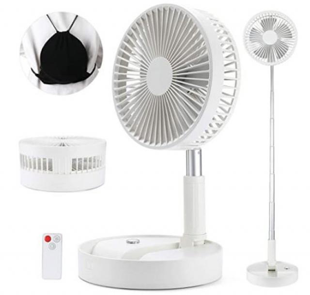 BESTBOMG Portable Table Fan, Folding Fan with Pedestal Adjustable Floor Fan with Remote Control and Time Set, 7200mAh Rechargeable Battery USB Charging