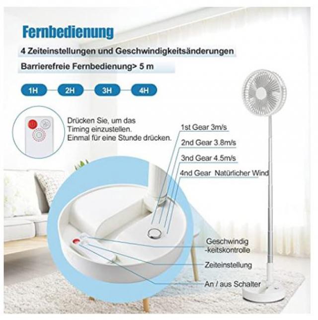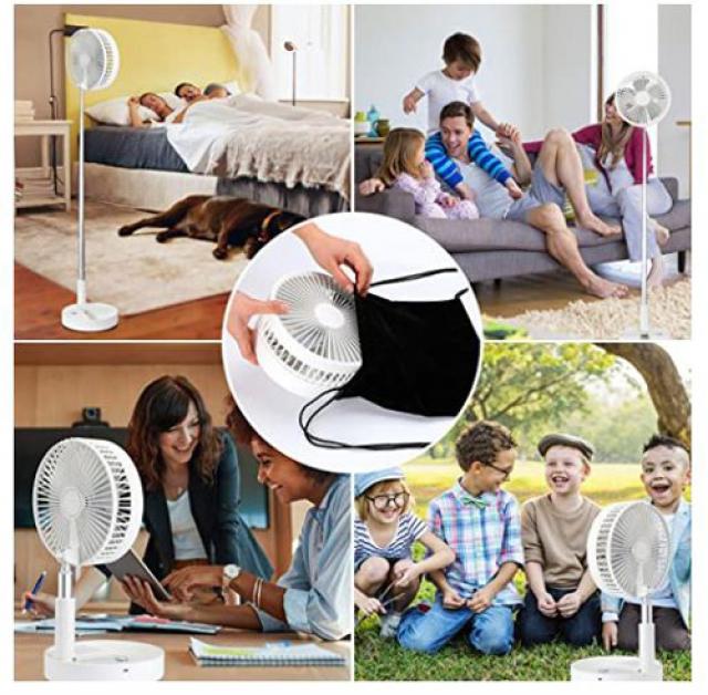 - Battery Powered Desk Floor Fan: With a built-in 7200mAh rechargeable battery, the foldable floor fan continues to work for 5-24 hours. The noise level is below 45dB, quiet.