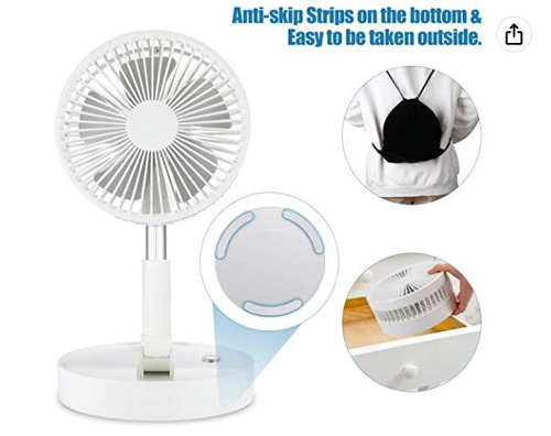 - Compact folding fan: folded size 3.7"*7.76", mini and portable for outdoor travel with bag packed. Height adjustable from 3.7" to 38.4", small table fan to pedestal fan with air circulator.