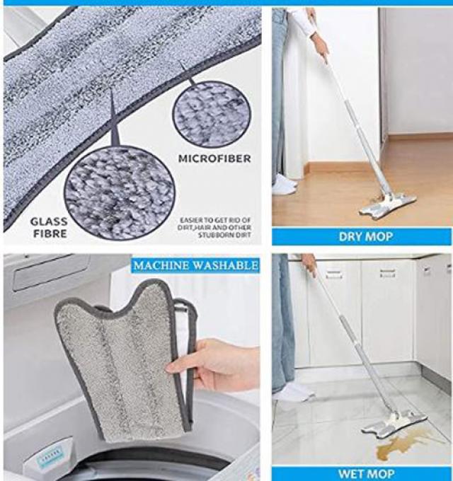 - Self-Wringing Mop - You can better protect your health and avoid contact with dirty water. By simply sliding the bar upwards and downwards, you can wring the water and dirt in a minute. The self-wringing Mop mechanism of this flat mop is easy and fast, Let you clean the ground easier<br>