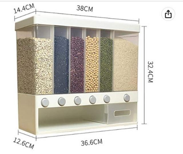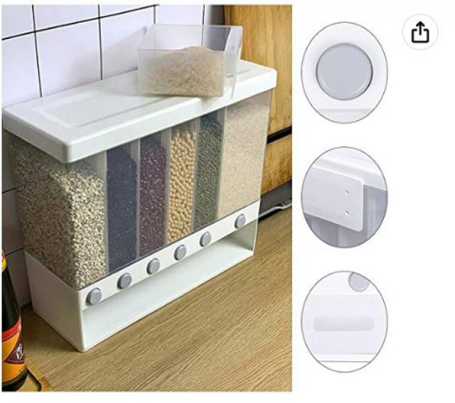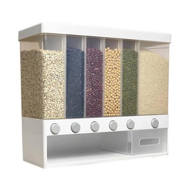 CNCEST Wall Mounted Dry Food Dispenser,5 Grid 10L Storage Dispenser,Free Control of Food Output,Dry Food Storage Box For Home and Kitchen (6Grid)