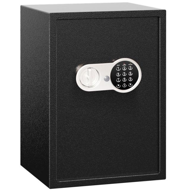 50ET Electronic digital safe locker features a quality digital lock, a user friendly electronic keypad, a strong and sturdy metal body. It is ideal to store your valuable documents, cash and jewelry in your home and offices. It has emergency override key lock.