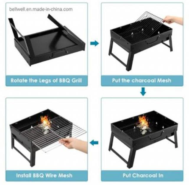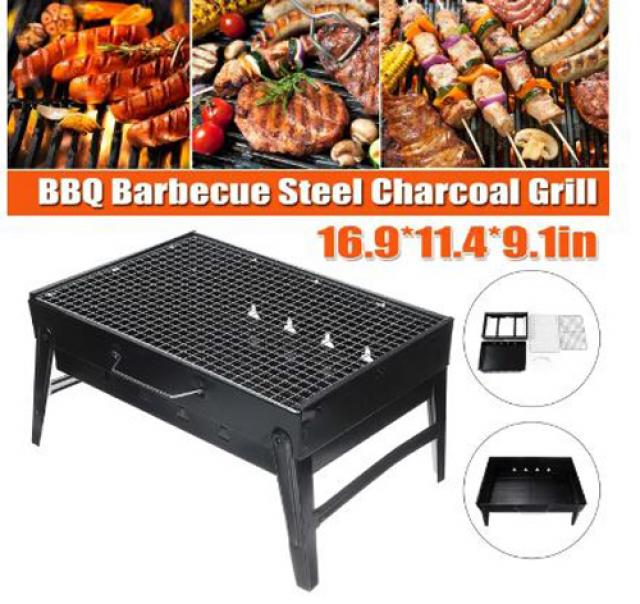 Folding Portable Outdoor Barbeque Charcoal Bbq Grill Oven Black Carbon Steel