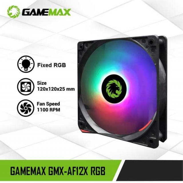 Gamemax AF12X Cooling 12CM FRGB PC FAN 120mm fan with Molex + 3-Pin connector featuring a stylish Fixed RGB LED Lighting design to add extra flair to your rig. Comes equipped with curved fan blades for increased air pressure, maximizing cooling performance and minimizing air resistance and noise.