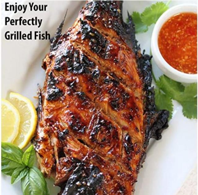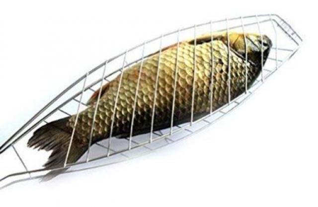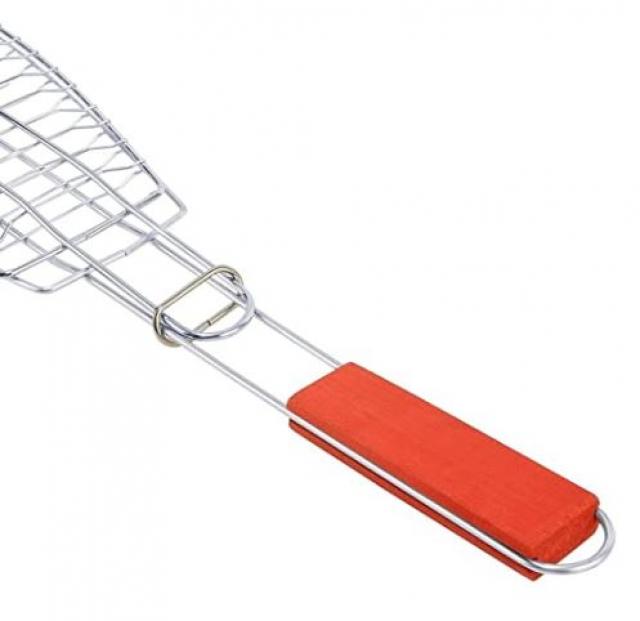 Kliznil Stainless Steel Fish Grill with Wooden Handle Roasted Portable Mini BBQ Grill Cooking Tools - Pack of 1 Pcs