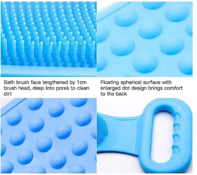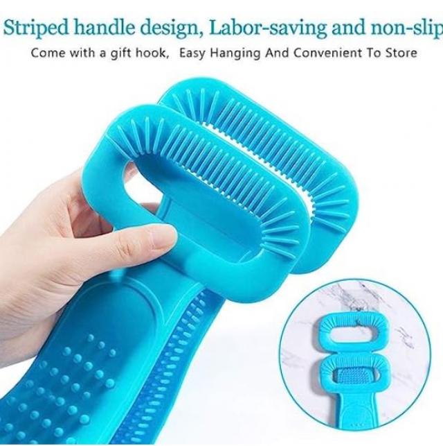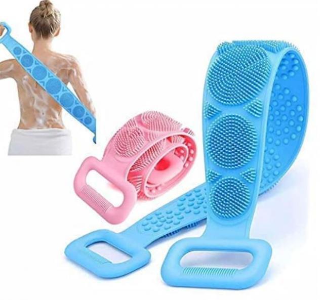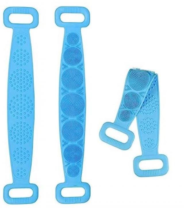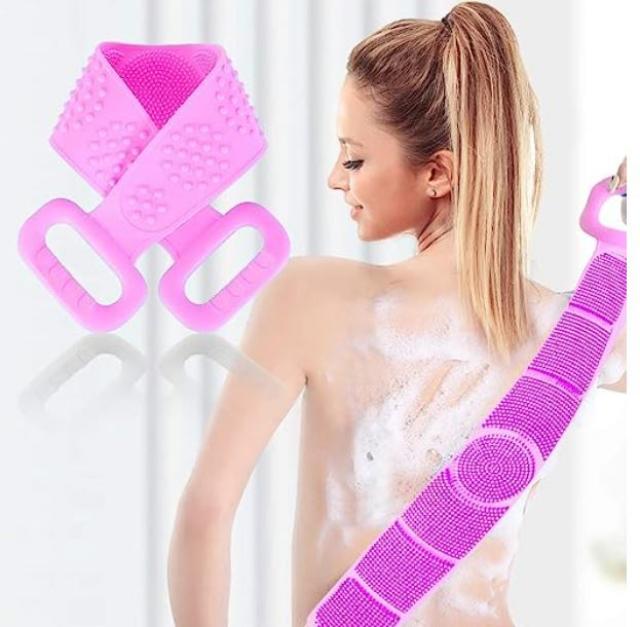 SNJM Silicone Body Back Scrubber Double Side Bathing Brush for Skin Deep Cleaning Massage, Dead Skin Removal Exfoliating Belt for Shower, Easy to Clean, Lathers Well for Men & Women (multicolour)