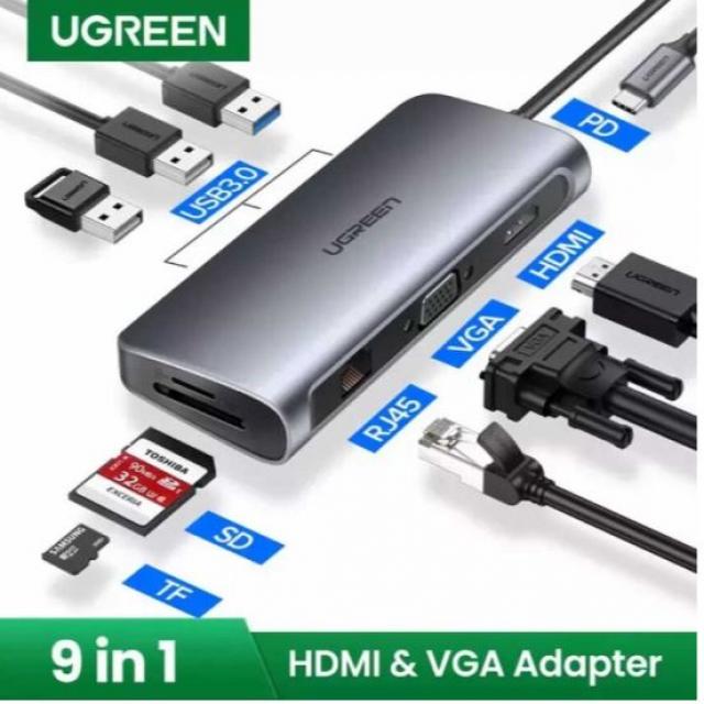 UGREEN 40873 9-in-1 USB-C PD to 4Kx2 K HDMI VGA RJ45 3x USB 3.0 SD TF Card