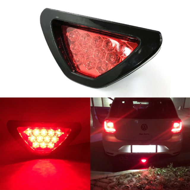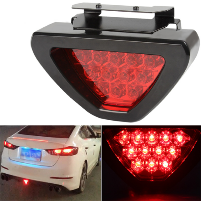 Product details of Universal F1 Style 12 LED Red Rear Tail Third Brake Stop Safety Lamp Light Car Car-styling Brake Lights Motorcycle Truck Newly design as Formula one style brake stop light. Lens Color: Red Attractive triangular design and adjustable bracket that fits around the backside of your bumper. Positive driving / strobe flashing blinker mode, positive brake light mode and negative Increase both Road Safety and Racing style