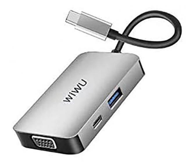 Wiwu Alpha 513HVP 5 in 1 Adapter USB Type-C To VGA, USB3.0, HDMI, 3.5mm Jack, PD Charge