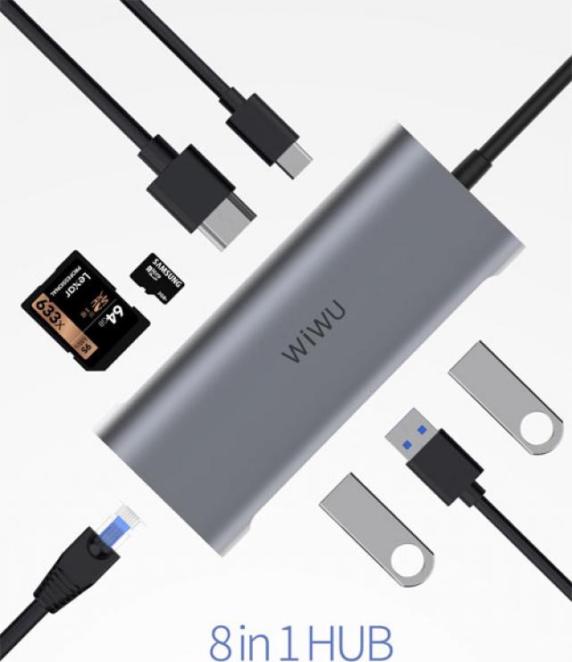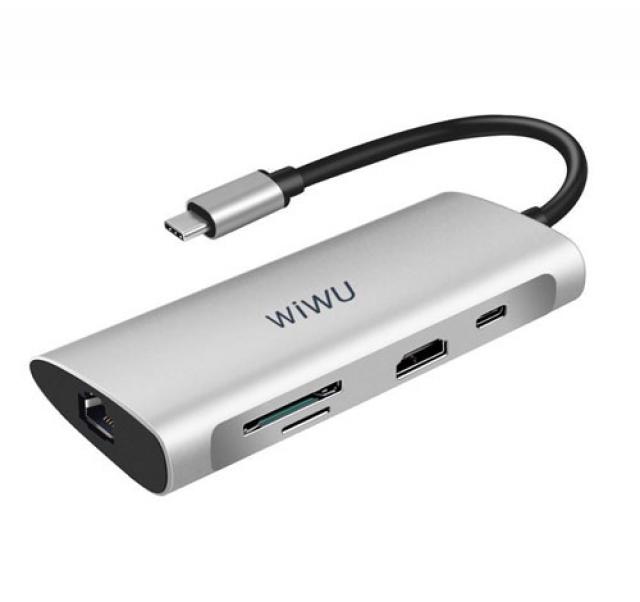 WiWU Alpha Type C Hub 8 in 1 Adapter with USB C to HD MI 3USB Card Reader Multifunctional USB HUB