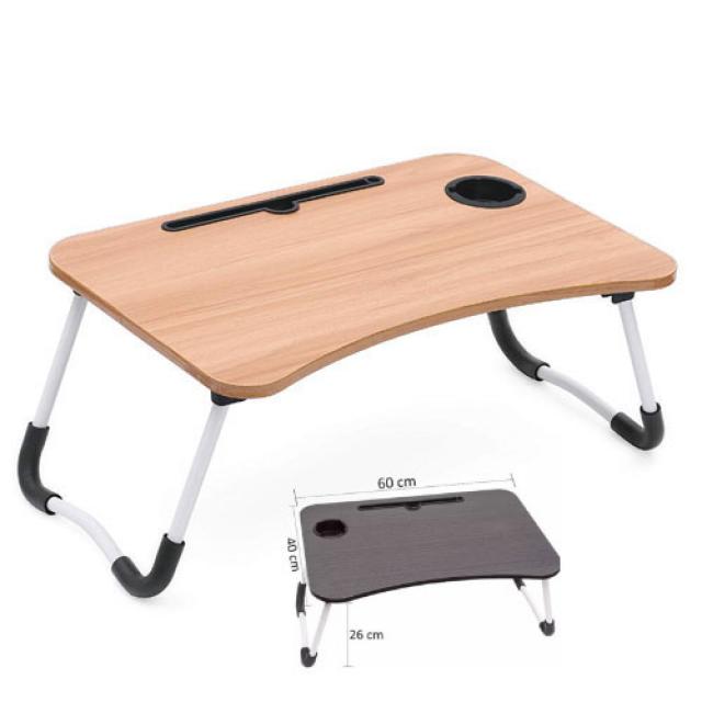 Wooden Laptop Table Folding Study Table Portable Bed Table High Quality Stand Shiny Cup Holder & Notebook & Tablet Stand (Random Colours)