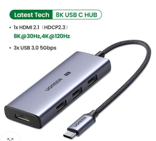 UGREEN 50629 USB-C 8K 4-IN-1 3XUSB 3.0, HDMI ADAPTER
